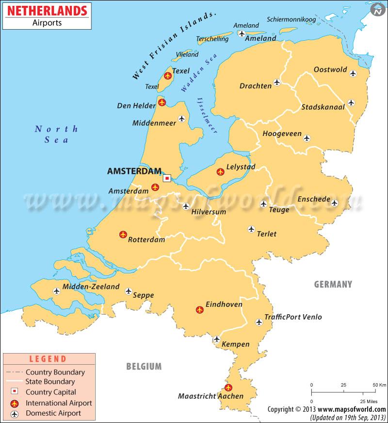 Los aeropuertos de países Bajos mapa